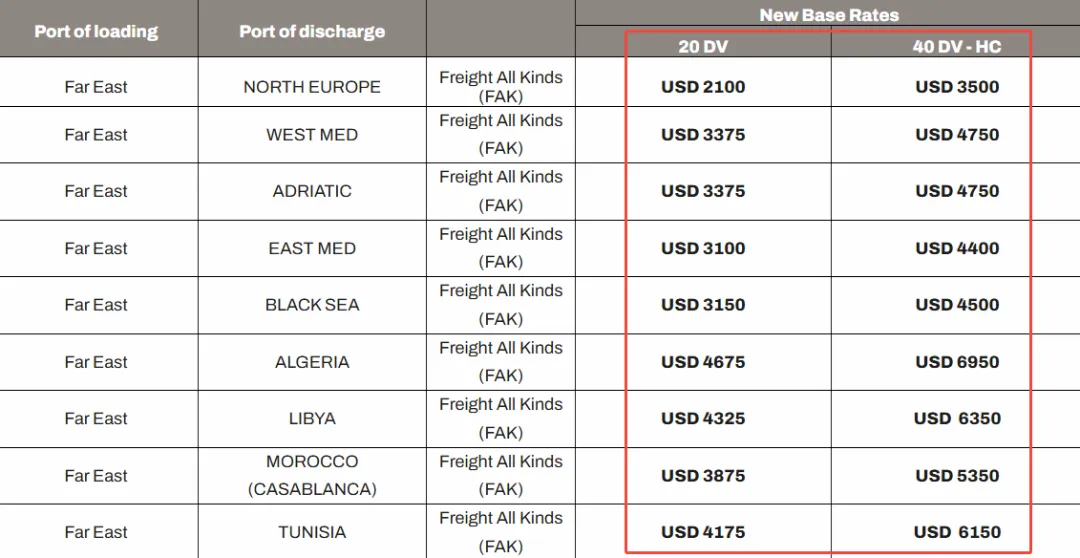 2) CMA CGM — New FAK rates for Mediterranean & North Africa