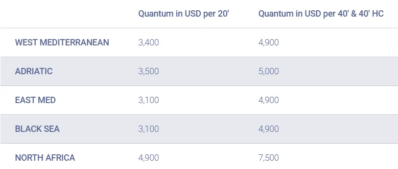 - Destination: All Mediterranean & North Africa ports